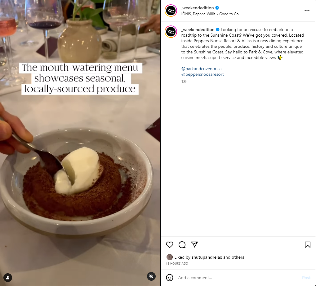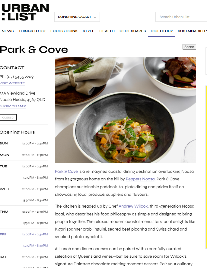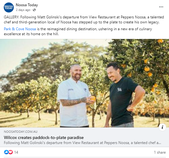 With heavy market saturation in Noosa’s prime Hasting’s precinct, Accor approached us to assist in the launch of its new restaurant located at Peppers Noosa, Park & Cove. The goal was to increase market share on the Sunshine Coast and beyond, building positive brand affinity as the ‘must visit’ destination for a premium, innovative and contemporary dining experience. Park & Cove’s primary hook and USP was its provenance – its unwavering ethos of supporting local. An in-person event was the most effective way of proving this point, and deepening the connection between the narrative we weaved and the media.