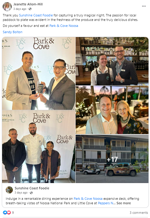 “I am pleased to provide this testimonial for We Are Brooklyn, who have been an invaluable partner to Park & Cove at Peppers Noosa Resort & Villas since early 2023, when they came highly recommended to us. From the initial concept to where we are today, they have played a critical role in shaping our venue, developing strategic marketing plans, and continuously driving PR for the venue.